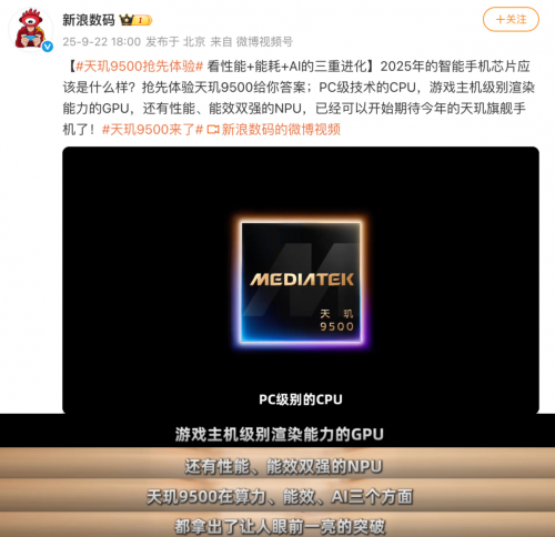 2025年9月22日,联发科发布天玑9500旗舰5G智能体AI芯片,这款芯片凝聚了联发科的先进技术和突破式创新,一经发布便引来科技从业者的诸多好评。