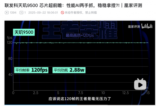 已经有博主用工程样机抢先对王者荣耀和崩坏·星穹铁道两款游戏,对天玑9500进行了实测。